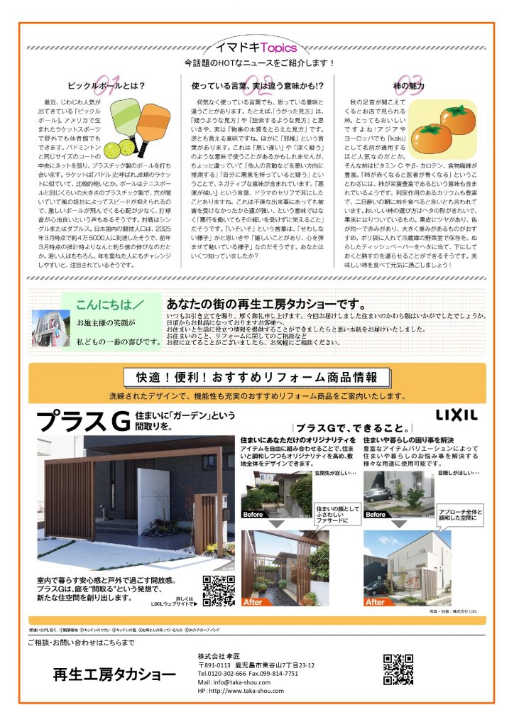 0120-302-666月に1回、発行している「リフォームかわら版」。